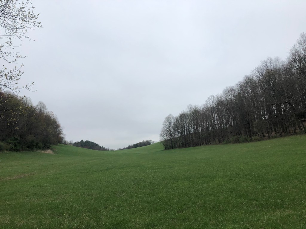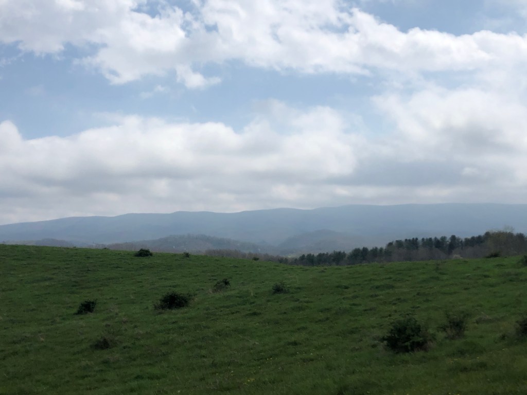 Our hike today was great. We got started around 8 and climbed up to meet the fog at the top of our first climb. For the next 10 miles, we meandered across the bright green farm land spread across the gorgeous rolling valleys of western Virginia. These farms are amazing to see from the high ridge lines on the Trail. The farm grass at this time of the year is an electrified neon green and the fields pop out between the breaks in the tree cover that are just starting to bloom.